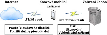 Chcete-li použít službu, která vyžaduje připojení k Internetu, jako je „Data Conversion Service“ nebo cloudové úložiště, zkontrolujte, zda je síť Wi-Fi, k níž je koncové mobilní zařízení připojeno, připojena k Internetu.