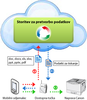 Za tiskanje datotek sistema Microsoft Office morate uporabiti storitev Data Conversion Service.