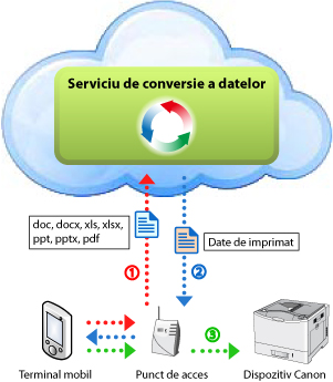 Utilizarea Data Conversion Service vă conectează la un server pe Internet care efectuează conversia datelor. În funcţie de conţinutul informaţiilor care trebuie imprimate şi de mediul de comunicare pe care îl utilizaţi, încărcarea şi descărcarea datelor pot dura câteva minute fiecare.