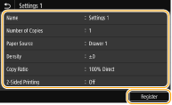Check the details of the settings to be registered, and select <Register>.