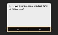 If you select <Yes>, a message appears. Check the message and then select <OK>. The registered setting combination is added to the Home screen as a shortcut button.