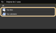 Seleccione <Tipo libro> o <Tipo calendario>