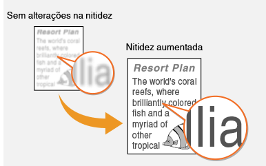 Você pode ajustar a nitidez da imagem copiada. Aumente a nitidez para dar mais nitidez a linhas e textos borrados, ou diminua a nitidez para melhorar a aparência de fotos de revistas.