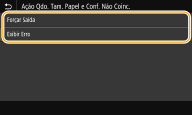 Selecione <Forçar Saída> ou <Exibir Erro>