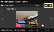 ![]() Quando você seleciona <Data/Hora (Crescente)> ou <Data/Hora (Decrescente)>, os arquivos são classificados com base na data e horário de modificação dos arquivos.