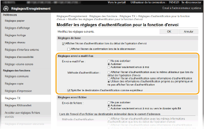 [Réglages d'authentification pour la fonction d'envoi].
