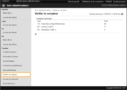 Cliquez sur [Numéro de tâche] pour les documents dont l'impression est suspendue et les documents sécurisés pour afficher leurs informations détaillées. Vous pouvez vérifier le nom de l'utilisateur et le nombre de pages sur le document imprimé.