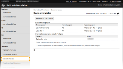 Une fois que vous êtes connecté en tant qu'administrateur système, vous pouvez cliquer sur [Numéro de tâche] pour afficher les informations détaillées ou un aperçu du document dont le transfert a échoué.