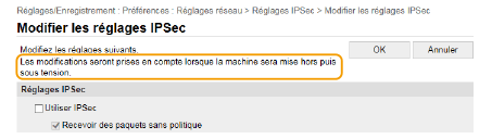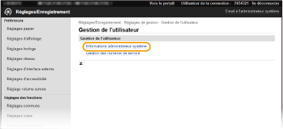Vous ne pouvez modifier certains réglages que si vous êtes connecté en tant qu'administrateur système.