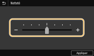 Vous pouvez modifier un grand nombre de réglages relatifs à l'affichage tels que la langue d'affichage. Pour en savoir plus à ce sujet : <Réglages d'affichage>