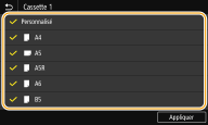 Vérifiez que seules les cases à cocher des formats de papier fréquemment utilisés sont cochées.