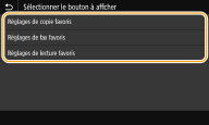 Sélectionnez la fonction avec les Paramètres favoris que vous souhaitez ajouter sous forme d'un bouton.