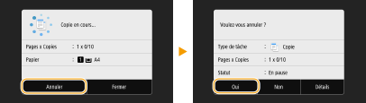 sur le panneau de commande. Vous êtes pouvez également annuler la copie après avoir examiné l'état de la copie.