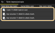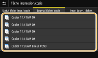 Si <Afficher le journal des tâches> est réglé sur <Désactivé>, vous ne pouvez pas consulter le journal des tâches de copie. <Afficher le journal des tâches>
