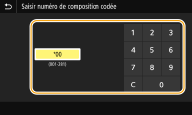 Si un écran de confirmation apparaîtLorsque <Confirmer num. télécop. saisi> est défini sur <Activé>, l'écran de saisie s'affiche à nouveau et vous permet de confirmer le destinataire (Vérification du numéro de fax saisi). Saisissez le destinataire une nouvelle fois.