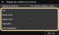 Si votre bureau dispose d'un serveur LDAP, vous pouvez définir un destinataire au moyen des informations utilisateur qui y sont stockées. Accédez au serveur LDAP à l'aide de l'appareil pour rechercher les informations utilisateur, puis définissez-les en tant que destinataires.