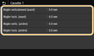 Si un document est décentré de la plage imprimable, réglez la position d'impression. Vous pouvez régler la position d'impression pour chaque source de papier. Vous pouvez régler la position d'impression dans la plage de -5,0 mm à +5,0 mm, par paliers de 0,1 mm.