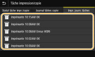 Si <Afficher le journal des tâches> est réglé sur <Désactivé>, vous ne pouvez pas consulter les journaux des impressions. <Afficher le journal des tâches>