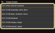 Sélectionnez le <Fuseau horaire> avant de régler la date et l'heure actuelles. Si plus tard vous changez le <Fuseau horaire>, la date et l'heure sont également modifiées en conséquence.