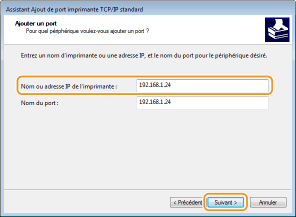![]() Vous ne pouvez ajouter un port MFNP que si vous avez installé le pilote à partir du CD-ROM/DVD-ROM fourni ou bien à partir du site Web Canon.