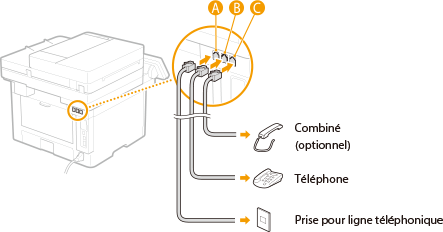 Branchez le câble téléphonique inclus sur la prise pour ligne téléphonique située sur l'appareil (