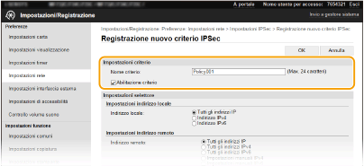 Nella casella di testo [Nome criterio] immettere dei caratteri alfanumerici per un nome utilizzato per l'identificazione del criterio.