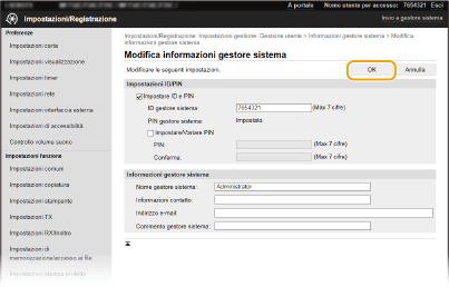Alcune impostazioni possono essere modificate solo dopo aver effettuato l'accesso in modo Gestore sistema.