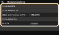 <Utilizzo memoria stampa protetta>Visualizza la quantità di memoria in uso per l'archiviazione dei dati dei documenti protetti.