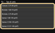 Se non viene visualizzata la schermata precedente quando si carica la cartaSe si carica sempre la stessa carta vassoio multiuso, è possibile ignorare le operazioni di impostazione carta registrando formato e tipo di carta come impostazioni predefinite. Quando si registra l'impostazione predefinita, tuttavia, la schermata illustrata sopra non viene visualizzata. Per visualizzare la schermata, selezionare <Specificare al caricamento carta> (Registrazione delle impostazioni predefinite per la carta per il vassoio multiuso).