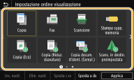 È possibile aggiungere/eliminare pulsanti di scelta rapida visualizzati nella schermata Schermata princip. in base alle proprie esigenze operative e preferenze. È anche possibile cambiare l'ordine in cui vengono visualizzati.