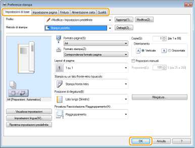 Specificare le impostazioni di stampa necessarie e fare clic su [OK].