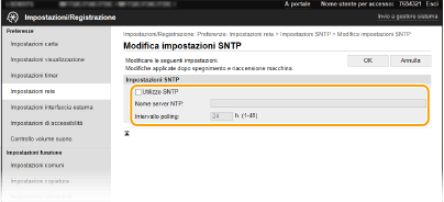 Selezionare la casella di controllo [Utilizzo SNTP] e specificare le impostazioni richieste.