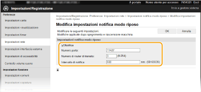 Per maggiori informazioni sulle operazioni di base da eseguire per configurare la macchina dalla IU remota, consultare Impostazione delle opzioni di menu dalla IU remota.