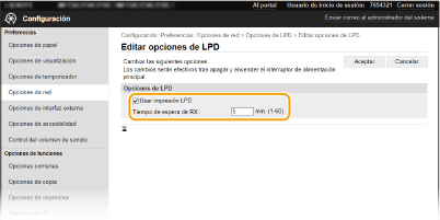 Seleccione la casilla de verificación para imprimir a través de LPD. Cuando no utilice la impresión LPD, quite la marca de la casilla de verificación. [Usar impresión RAW]