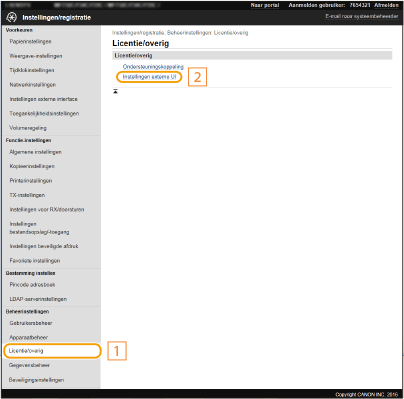 Het bedieningspaneel gebruikenU kunt communicatie met TLS-versleuteling ook in- of uitschakelen vanuit <Menu> in het scherm Start. <Externe UI>