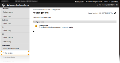 Wanneer u zich hebt aangemeld in de systeembeheerdersmodus, kunt u op [Opdrachtnummer] om gedetailleerde informatie weer te geven van, of een voorbeeld te bekijken van het document waarvan het doorsturen is mislukt.