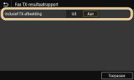 Wanneer u <Aan> selecteert, kunt u een deel van een verzonden document opnemen in het TX-resultaatrapport.