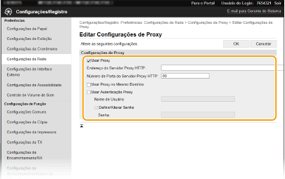 Selecione a caixa de verificação [Usar Proxy] e especifique as definições necessárias.