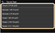 Se o ecrã mostrado acima não aparecer quando o papel é colocadoSe colocar sempre o mesmo papel no tabuleiro multifunções, pode ignorar as operações de definição do papel gravando o tamanho e o tipo do papel como predefinição. No entanto, o ecrã mostrado acima não aparece se registar a predefinição. Para ver o ecrã, selecione <Especificar ao Colocar Papel> (Registar predefinições de papel para o tabuleiro multifunções).