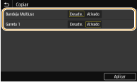 Especifique sempre <Ativado> para uma gaveta para papel, no mínimo. Se selecionar <Desativ.> para todas as gavetas, não é possível concluir o procedimento de definição.