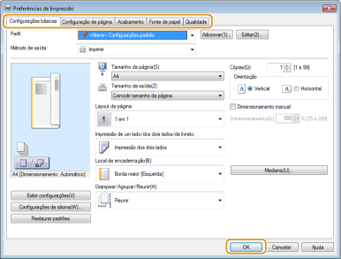 Especifique as definições de impressão conforme necessário e clique em [OK].