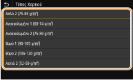 ![]() ![]() Αν καταχωρήσετε το μέγεθος του χαρτιού που χρησιμοποιείτε συχνά στα πλήκτρα <S1> έως <S3>, μπορείτε να τα εμφανίζετε με το πάτημα ενός πλήκτρου. Καταχώριση χαρτιού ειδικού μεγέθους