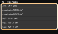 Δεν εμφανίζεται η οθόνη που απεικονίζεται πιο πάνω όταν έχει τοποθετηθεί χαρτί.Εάν τοποθετείτε πάντα το ίδιο χαρτί στον δίσκο πολλαπλών χρήσεων, μπορείτε να παρακάμψετε τις ενέργειες ρύθμισης χαρτιού, καταχωρίζοντας το μέγεθος και τον τύπο χαρτιού ως προεπιλεγμένη ρύθμιση. Ωστόσο, όταν έχει καταχωριστεί η προεπιλεγμένη ρύθμιση, δεν εμφανίζεται η οθόνη που απεικονίζεται πιο πάνω. Για να εμφανίσετε την οθόνη, επιλέξτε <Ορίστε το Χρόν Τοποθ Χαρτ> (Καταχώριση προεπιλεγμένων ρυθμίσεων χαρτιού για τον δίσκο πολλαπλών χρήσεων).