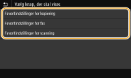 De indstillinger, der skal tilføjes som en genvejsknap, skal være registreret på forhånd som favoritindstillinger. Registrering af ofte anvendte indstillinger