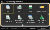 Du kan tilføje genvejsknapper til Hjem-skærmen for ofte anvendte funktioner som f.eks. <Kopi>, <Fax> og <Scan>. Du kan f.eks. udføre opgaver hurtigere og mere effektivt ved at tildele en indstillingssekvens (f.eks. "Scan begge sider af en original, gem det som en meget komprimeret PDF-fil, og send den via e-mail") til en enkelt knap.