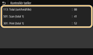 Viser det samlede antal sider for kopiering og udskrivning i sort og hvid.
