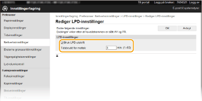 Merk av i boksen for å skrive ut via LPD. Når du ikke bruker LPD-utskrift, fjerner du merket i boksen. [Bruk RAW-utskrift]