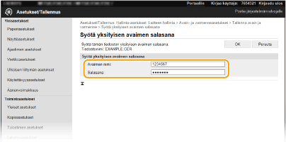 [Avaimen nimi] Syötä tallennettavan avaimen nimi aakkosnumeerisilla merkeillä.