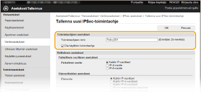 Määritä asetukset [Voimassa] ja [Autentikointi]/[Salaus]/[DH-ryhmä].