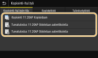 Valitse asiakirja, jonka tilan haluat tarkistaa, <Kopiointi-/tul.työn tila> ‑välilehdestä.